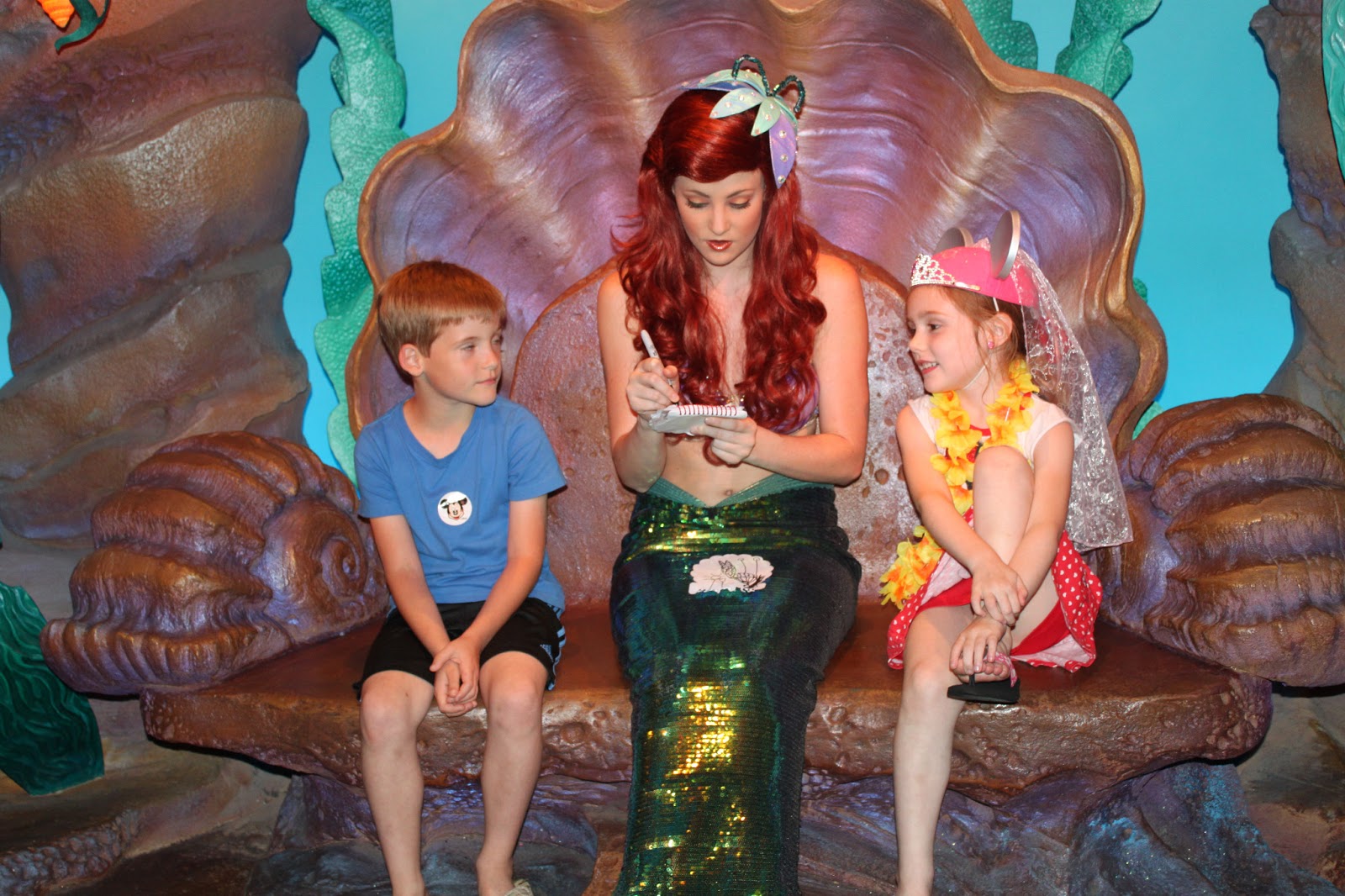 While we were waiting in line to meet Ariel Emma Claire worked hard to draw her the perfect picture. As we were leaving we watched her place it in her special treasure box. Emma Claire thought that was the greatest. Check out those plastic forks some child gave her. ; 0